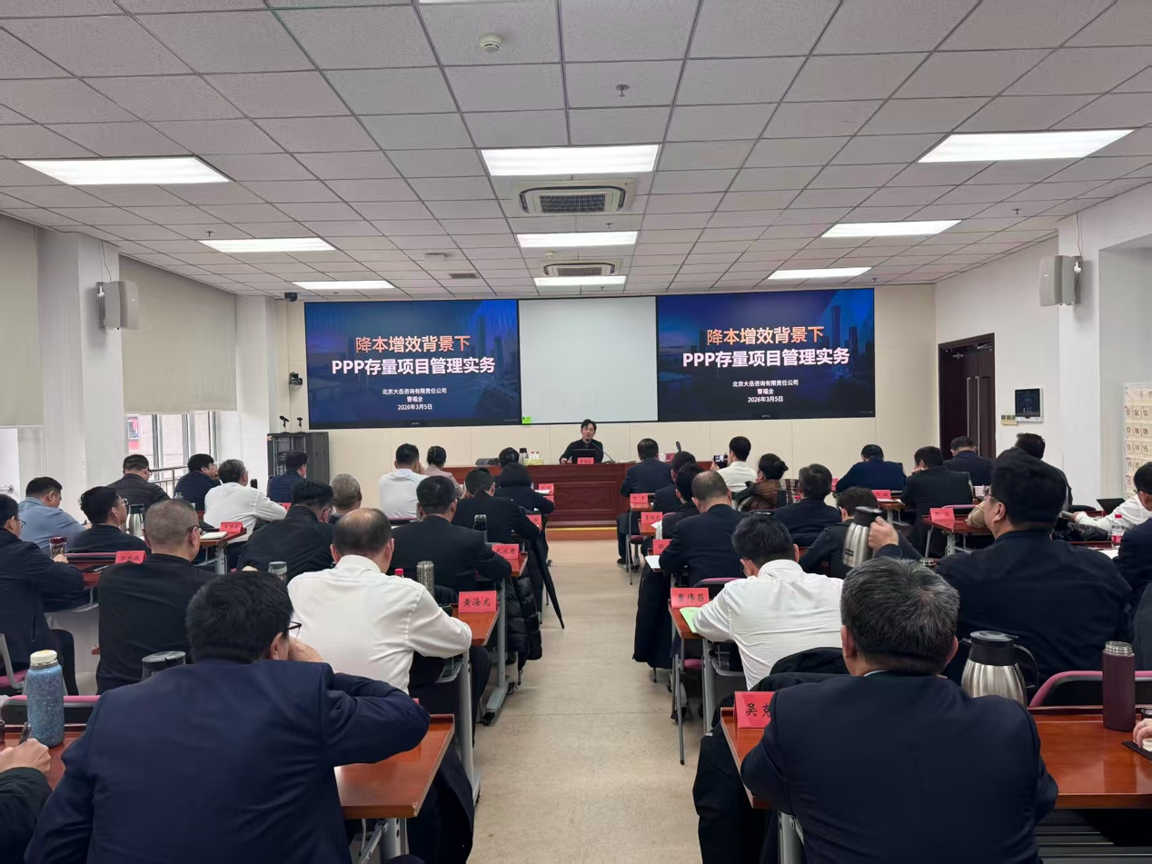 3月5日,大岳咨詢董事總經(jīng)理曹福全受邀,在北京市委黨校(國(guó)家行政學(xué)院)為中建方程集團(tuán)全體員工開(kāi)展《降本增效背景下PPP存量項(xiàng)目管理實(shí)務(wù)》專(zhuān)題培訓(xùn),以專(zhuān)業(yè)智慧賦能?chē)?guó)企發(fā)展,為其“十五五”開(kāi)好局提供支撐。